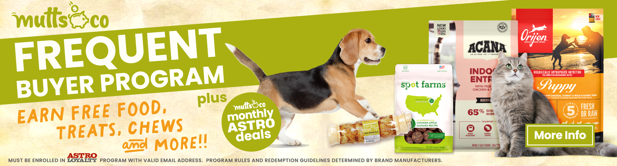 A proper diet can significantly impact the health and wellness of your puppy or kitten, cat or dog. But searching pet stores for the best dog or cat food can be overwhelming, Mutts & Co. proudly carries dozens of trusted dry, raw frozen, fresh, freeze-dried and wet food brands to meet the nutritional needs of every breed, activity level, age and unique dietary need. Virtually every brand comes with a frequent buyer program to earn free food with every purchase. We also strongly emphasize health-focused treats, natural bones and whole prey chews for enrichment and enjoyment. Stop in any Mutts & Co. pet store in the Columbus, Ohio area to speak with a Pet Wellness Advocate about the best natural, high quality food options for your pets. Or shop our online store for more information and free, same-day delivery options.