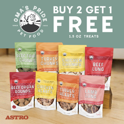 Buy any 2 Oma's Pride 1.5oz Treats, Get 1 FREE!