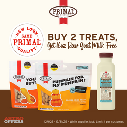 Buy any 2 Primal Treats, Get a 16oz Raw Goat Milk FREE!