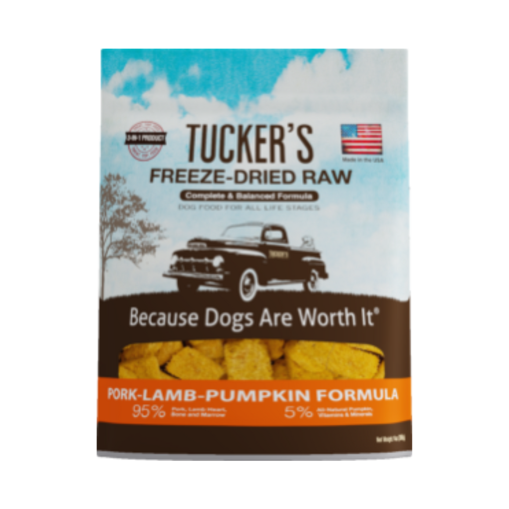 Tucker's Complete & Balanced Pork-Lamb-Pumpkin Formula is formulated to meet the nutritional levels established by the AAFCO Dog Food Nutrient Profiles for All Life Stages, including growth of large size dogs (70lbs or more as an adult).