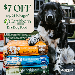 Get $7.00 OFF a 25lb bag of Earthborn Holistic, Unrefined, or Venture Dry Dog Food.