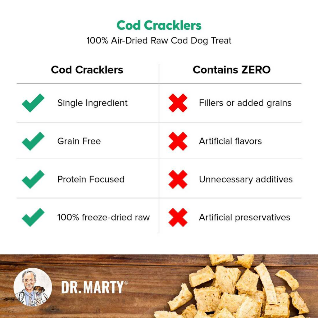 That’s why Cod Cracklers are made from delicious cuts of wild-caught cod — and nothing else. The result is a naturally delicious treat that’s air-dried for a surprisingly crunchy texture your dog will love.