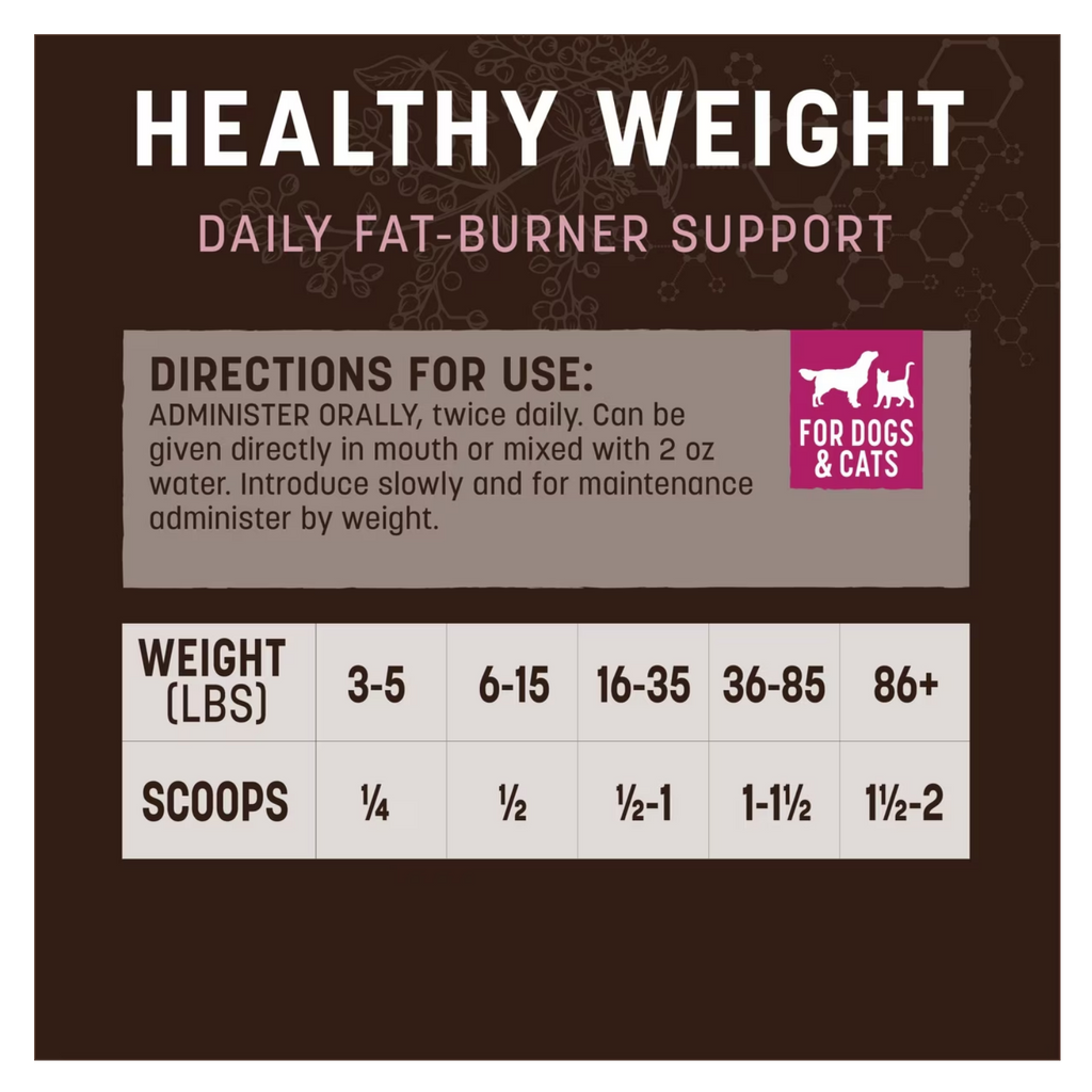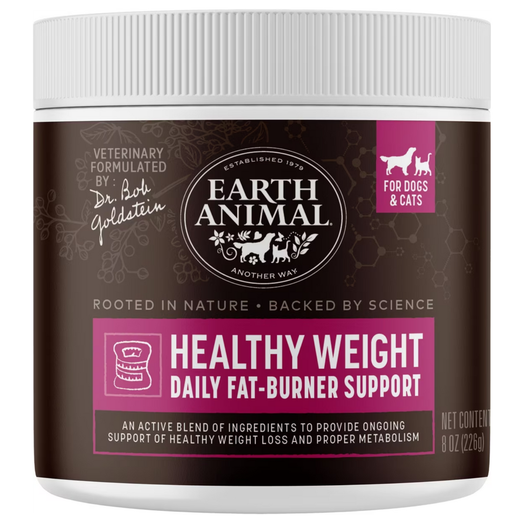 Help your pal shed some pounds with Earth Animal Apothecary Healthy Weight Metabolism & Weight Management Powder Supplement for Dogs & Cats. This powder supplement features natural ingredients like rice bran, chia, and L-carnitine to support weight loss, help metabolize fats and carbohydrates, and support normal digestion. It’s the perfect complement to homemade, over-processed, and overcooked diets. It’s never been easier to support your pet’s health. Just add the recommended number of scoops to your pet’s food (sold separately) twice daily.
