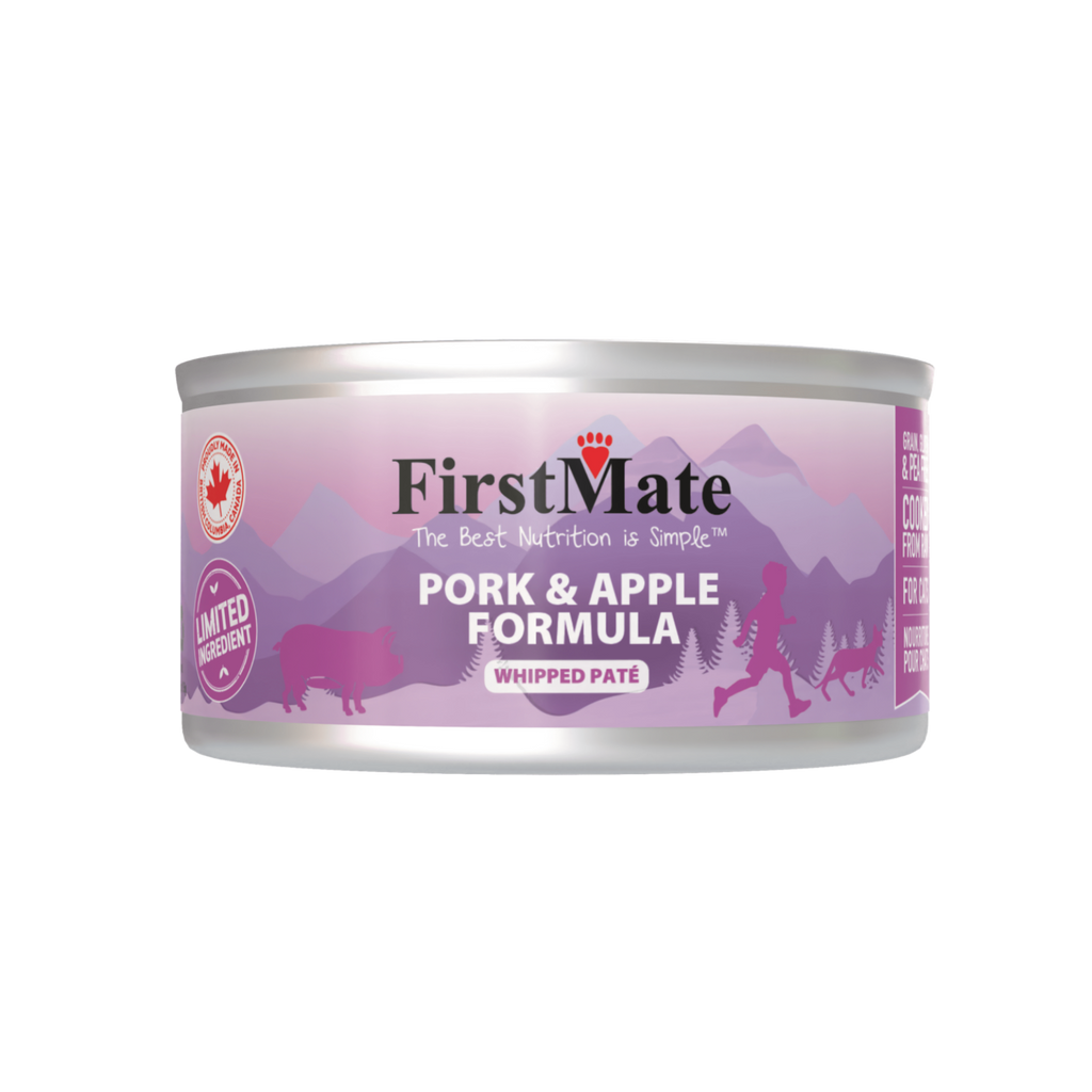 FirstMate’s Pork & Apple Formula uses Canadian pork with vegetables. Our Pork is food-grade without added hormones. This Grain Free formula is ideal for everyday feeding and can be fed alongside one of our dry options or on its own as a complete and balanced formula.