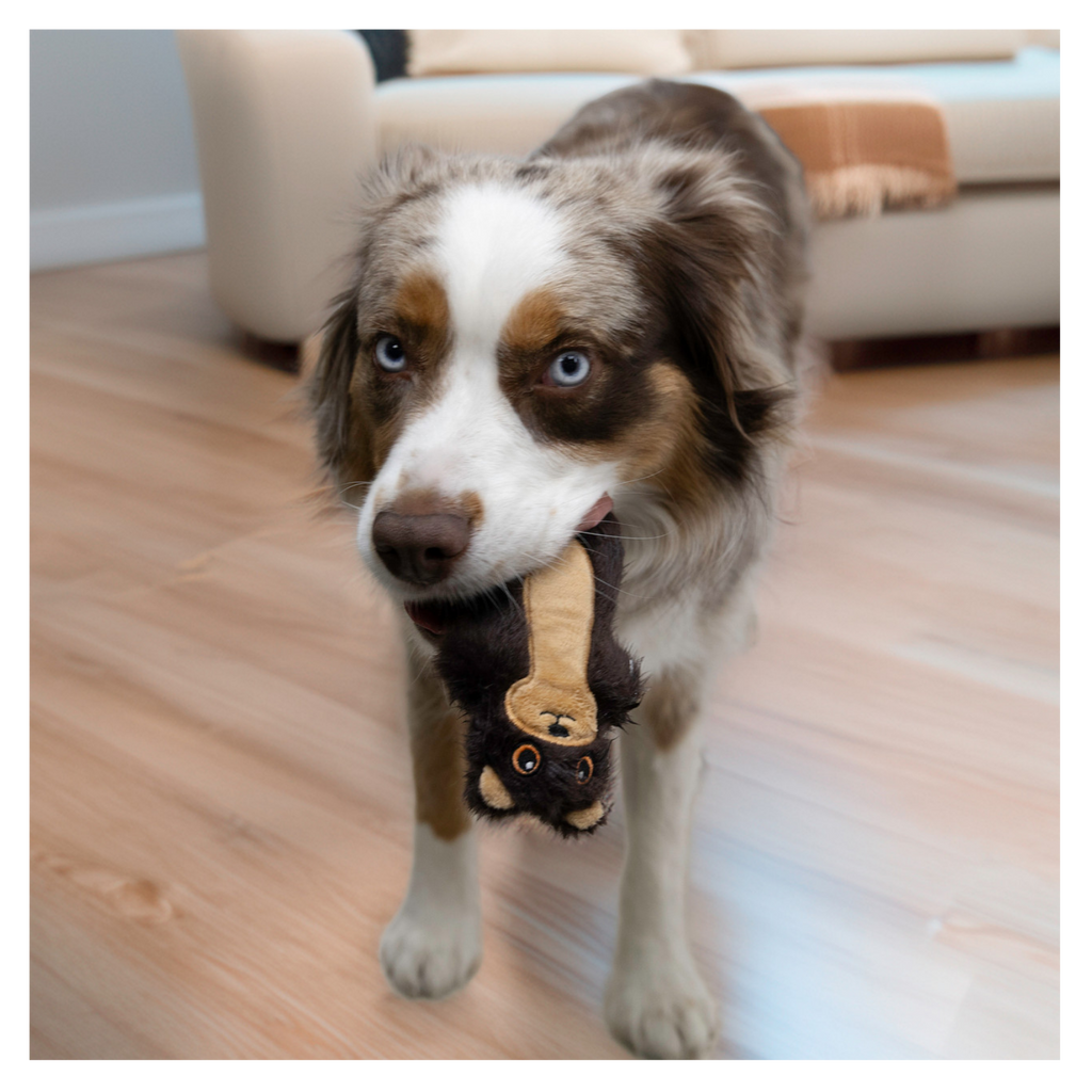 These long KONG Snuzzles Minis characters are made for little dogs who like to make big noises! Tiny and plump, the unique long shape is easy for dogs to pick up and carry, and fun for throwing during games of fetch. The full-body squeaker gives a boisterous call and creates a dense mouthfeel that entices chewing, gumming, and squishing. Velvety plush exterior makes these mini characters perfect for indoor play and snuggling.
