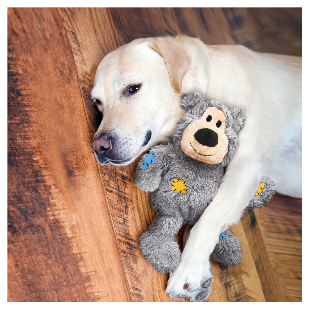 KONG Wild Knots are soft and cuddly on the outside while durable and strong on the inside. Wild Knots bears are sure to be a hit with dogs and their pet parents. Dogs love the knotted skeleton, and the reinforced plush body provides extra durability. KONG Wild Knots have less stuffing for less mess and they squeak to entice play.