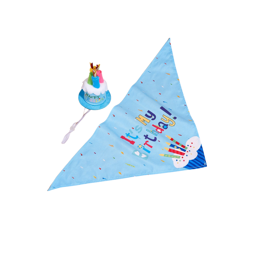 Little Trendy Blue Pet Party Hat with Candles & It's My Birthday Pet Bandana