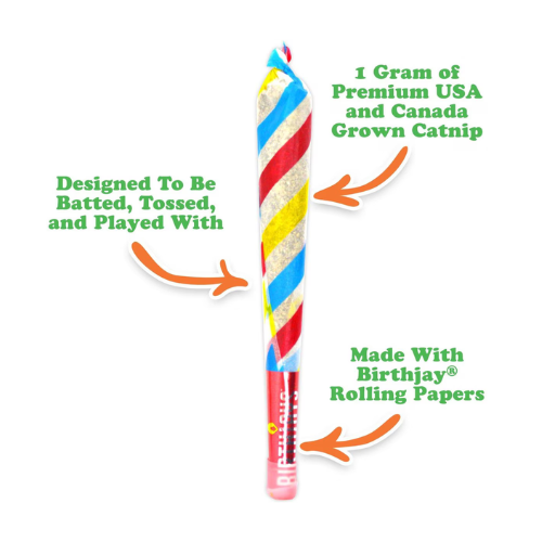 Elevate your furbaby’s celebration with Meowijuana Birthjay’s Party Size Catnip Rollies. These party-size treats are packed with Meowijuana catnip, ensuring a high-quality and irresistible treat for your feline friend. Each one is expertly rolled in festive Birthjay papers, adding a celebratory touch to your best friend’s special day. Watch your kitty light up with joy and excitement as she indulges in this premium catnip experience. Designed to promote playfulness and relaxation, these treats are the perfect way to show your cat just how much you care.