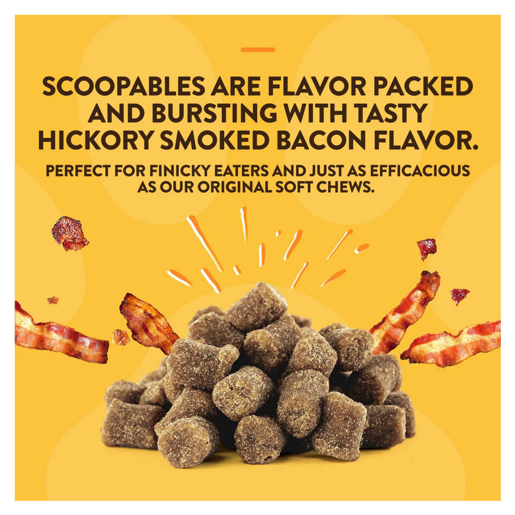 Scoopables® No Scoot® Anal Gland Support is flavor packed and bursting with tasty hickory smoked bacon flavor, perfect for finicky eaters and just as efficacious as our original soft chews.