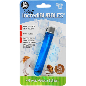 Pet qwerks flavor infused doggy and cat incredibubbles don’t pop when they touch the ground! Not your average bubbles. It’s flavor-infused bubbles. Safe, fun for pets and kids too. Catch them, stack them, and watch them roll on the ground! Blow the bubbles as high in the air as possible. Catch and hold them in your hand. They will remain un-popped on the floor or lawn. For the best results use your hands to wave the bubbles in the air for a moment. The more seconds they float in the air, the lighter and more durable they become. Bubbles dry in the air, and land on the ground intact, waiting to be attacked by cats and dogs alike. Pets really love chasing and bursting these bubbles! Economical and fantastic fun. Incredibubbles have thousands of bubbles that last for hours, giving you the perfect way to spend your day outdoors with your favorite furry companion.
