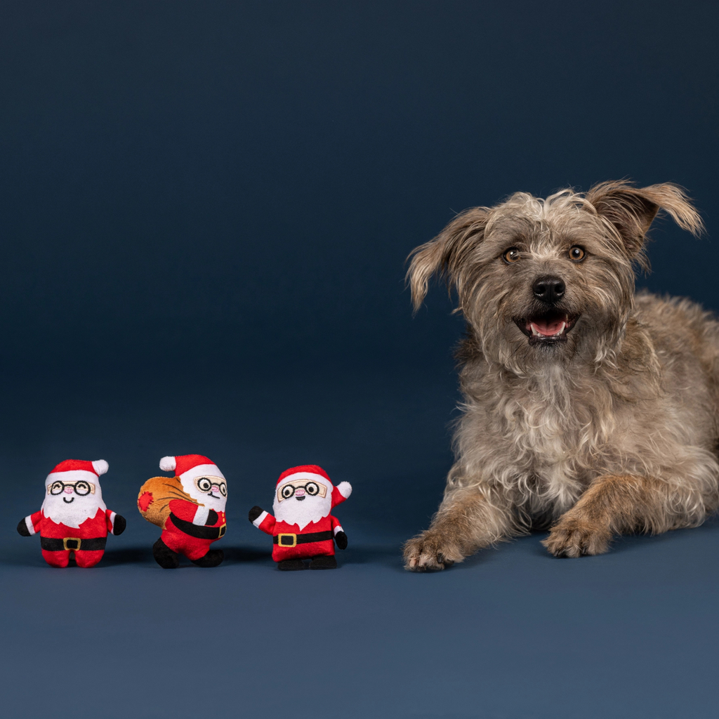 Up to snow good! PetShop by Fringe Studio's “Rebels Without a Claus” 3 piece mini plush toy set is perfect for the pup that likes to play all day. Made with a loud squeaker and crazy crinkle paper in each toy, this trio is ready to spread holiday cheer for all to hear. Great for small dogs and not intended for aggressive chewers.