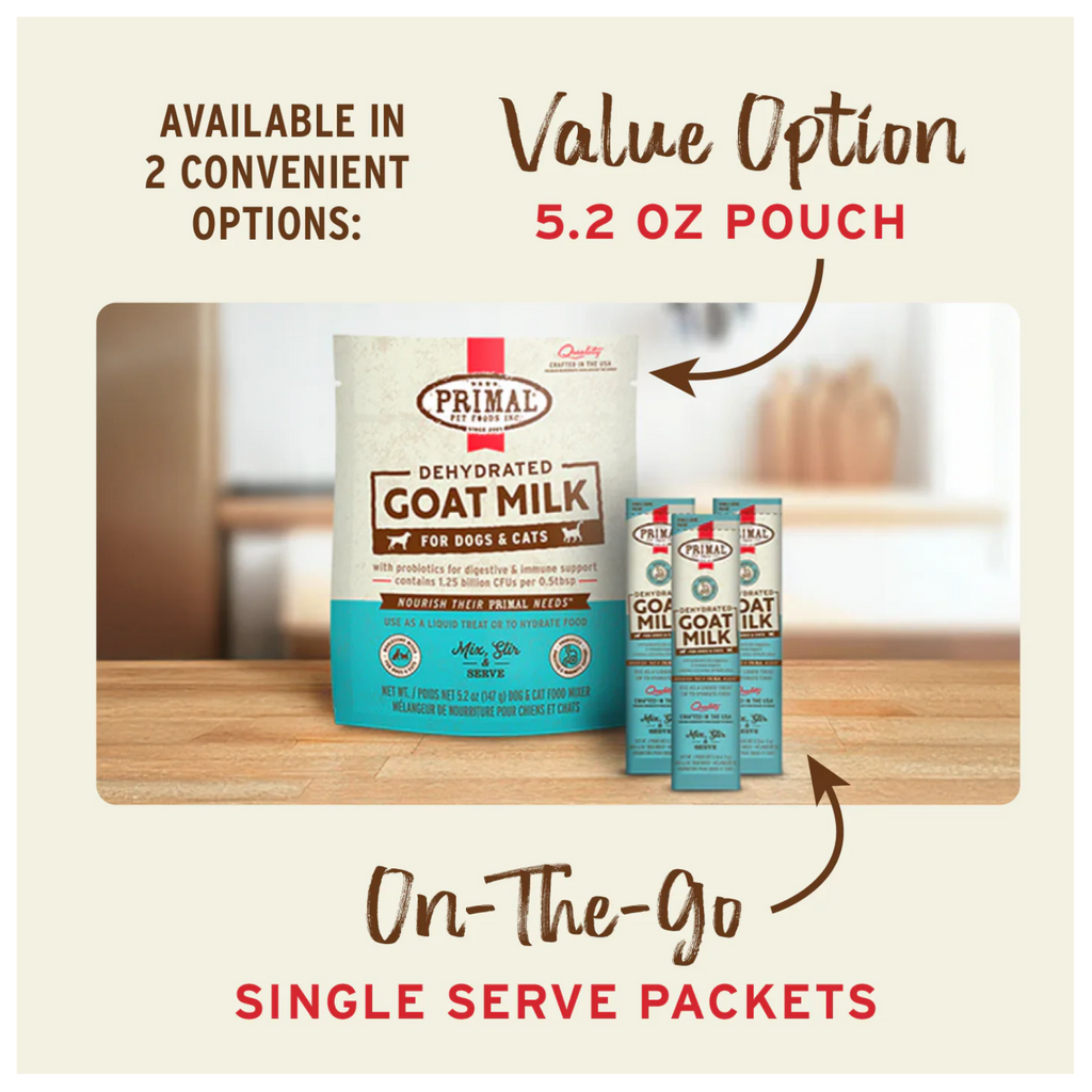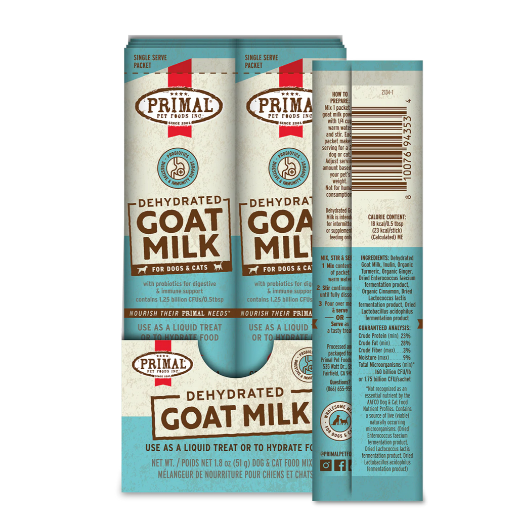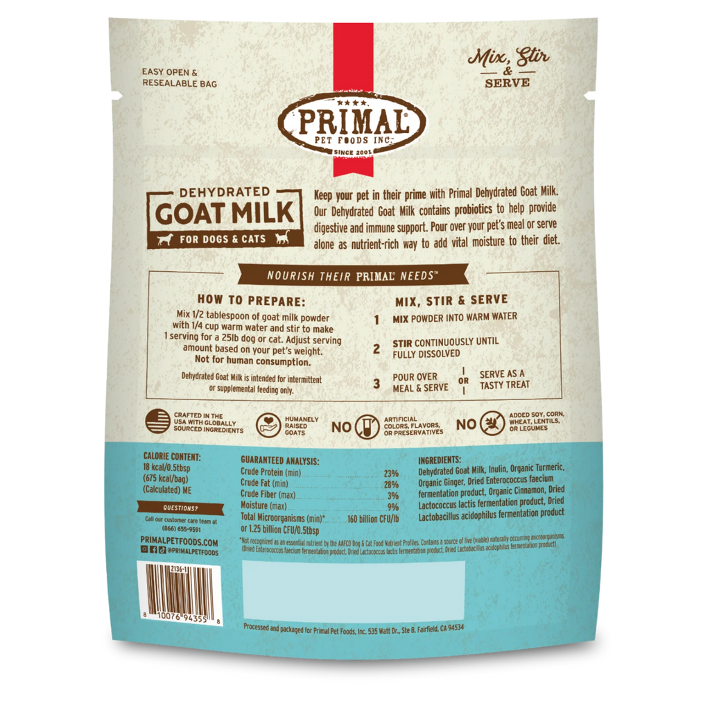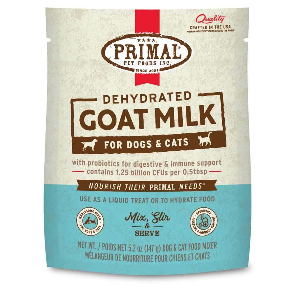 Give your pet more time in their prime with Primal Dehydrated Goat Milk. Our recipe contains probiotics that provide digestive and immune support and is sourced from certified humanely raised goats.