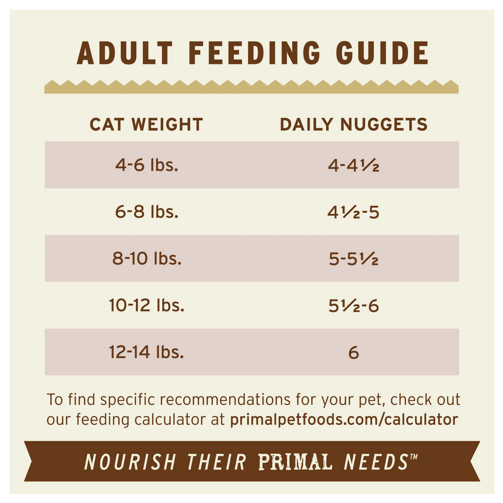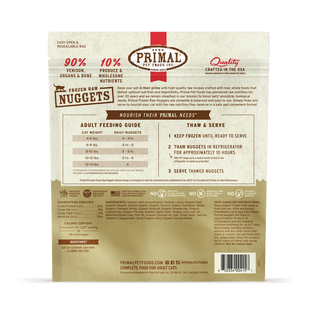 Only serve Primal raw foods when completely thawed—frozen foods can be difficult for animals to digest. Never microwave any pet food.