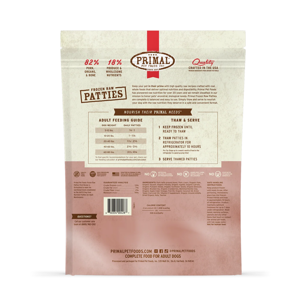 Primal Patties Pork Formula Frozen Raw Dog Food 6 lbs