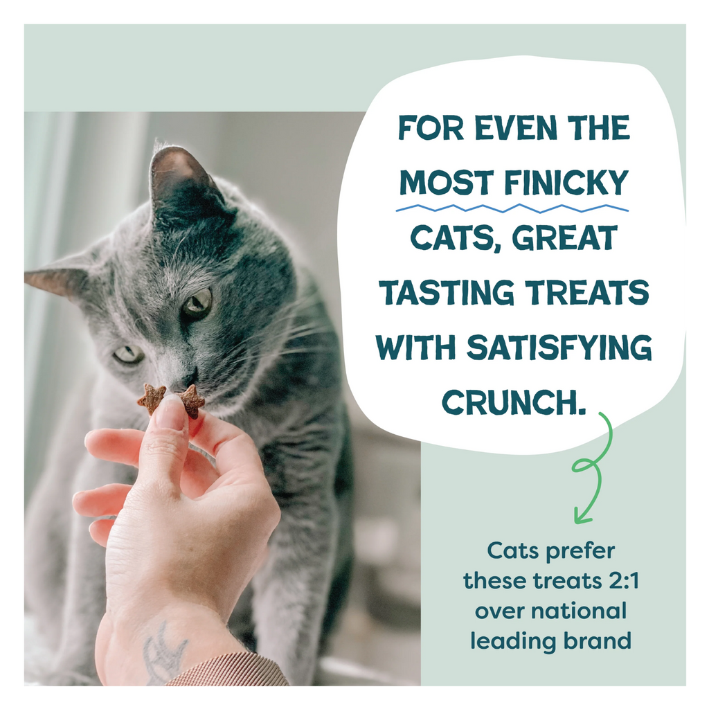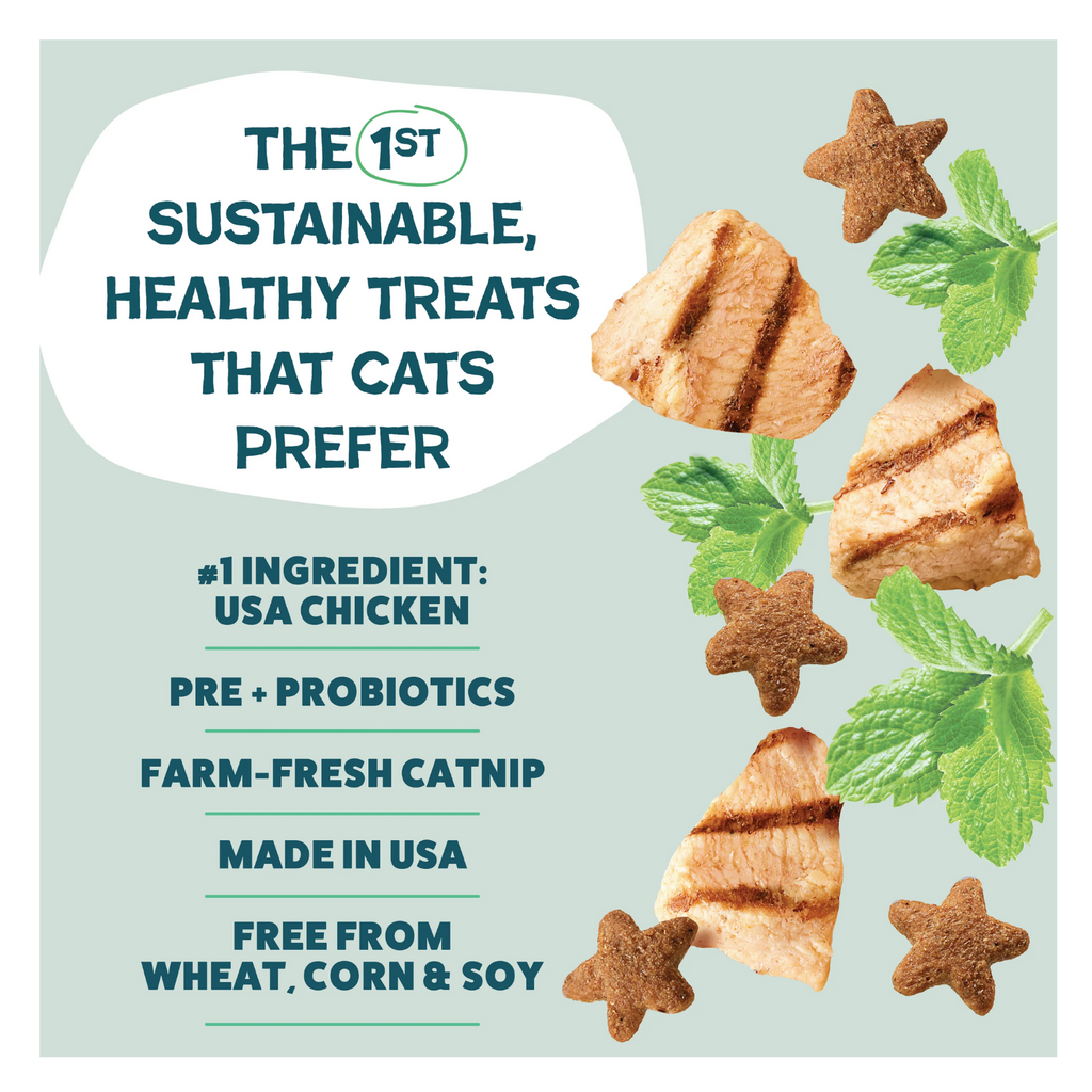 Chillin has never been easier or tastier! Our fresh catnip may cause a little fun followed by a trip to the couch. These crunchy, star-shaped, bite-sized treats are made with chicken, sweet potatoes, catnip along with both pre & probiotics, which helps to support digestion!