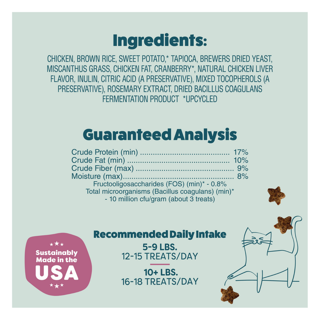 If your kitty can say chicken, get them some now! Whether you have a celeb or average kitty they will love our blend of savory chicken with a hint of tart cranberries. We include prebiotics and probiotics for digestive support.