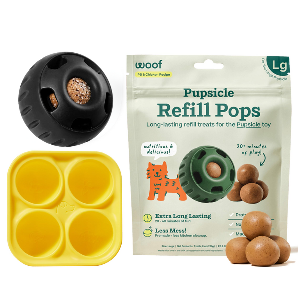 Woof Pet Pupsicle Treats – Long-lasting, refillable treats made with simple, quality ingredients to keep your dog satisfied and engaged.